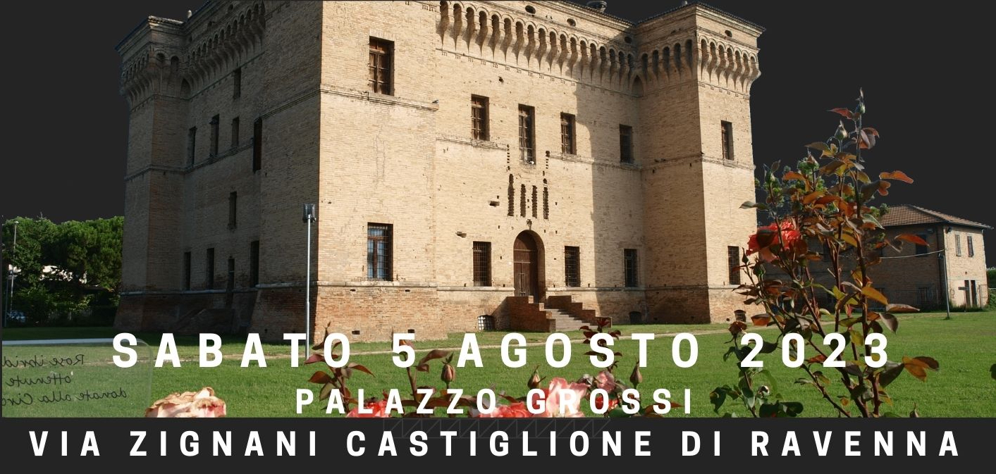Nella splendida cornice di Palazzo Grossi (il Castello), via Zignani a Castiglione di Ravenna, sabato 5 AGOSTO 2023 vi aspettano la visita al Castello a cura del prof. Ennio Rossi e un ricordo del prof. Umberto Foschi insieme ad alcuni dei suoi testi, sapientemente declamati da Ilario Sirri e impreziositi dalle emozioni suscitate dalla musica per pianoforte curata dalla prof.ssa Raffaella Benini e dalla mostra del pittore Caputo, con sorpresa finale “ad effetto”.