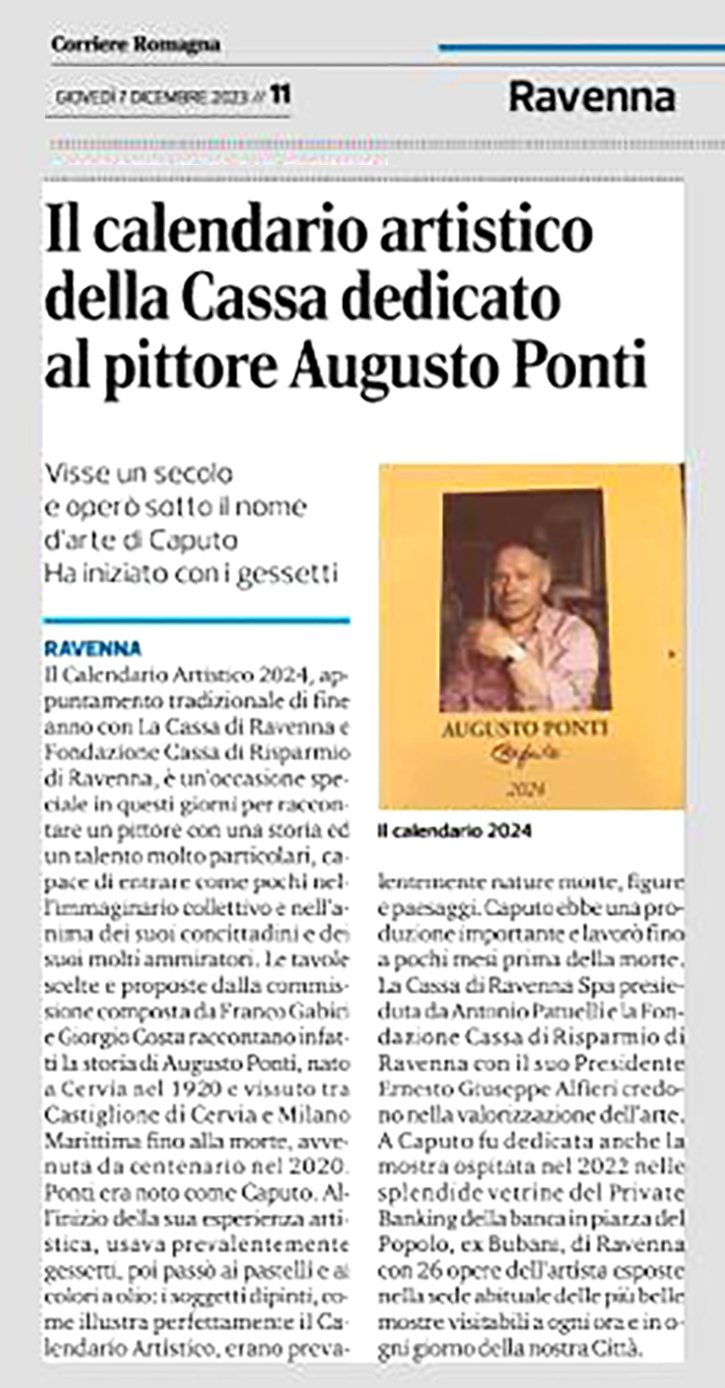La Cassa di Ravenna S.p.A. e la Fondazione Cassa di Risparmio di Ravenna hanno dedicato a Caputo il calendario artistico 2024!