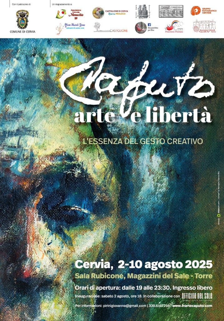 Alla mostra di pittura “Caputo, arte e libertà. L’essenza del gesto creativo”, realizzata in collaborazione con diversi gruppi e associazioni del territorio,è statoconcesso il patrocinio del Comune di Cervia.