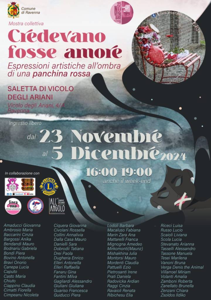 Organizzata dalla Pro Loco Decimana con diverse collaborazioni, in occasione della giornata contro la violenza sulle donne, la mostra è in programma dal 16 al 23 novembre 2025 a S.Pietro in Vincoli (RA), presso la Sala della Circoscrizione, in Via Pistocchi 41/A (Lunedì-Sabato 9/12.30 – Domenica 15.30/18 – Ingresso libero).Per il programma dettagliato consultare il volantino allegato
