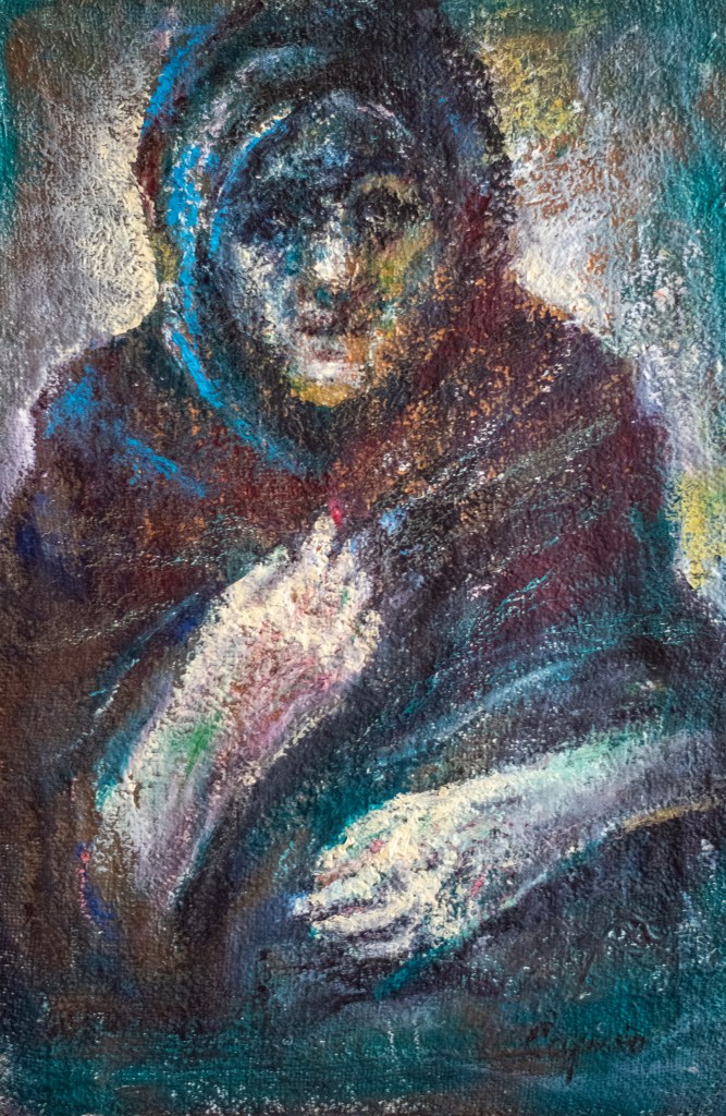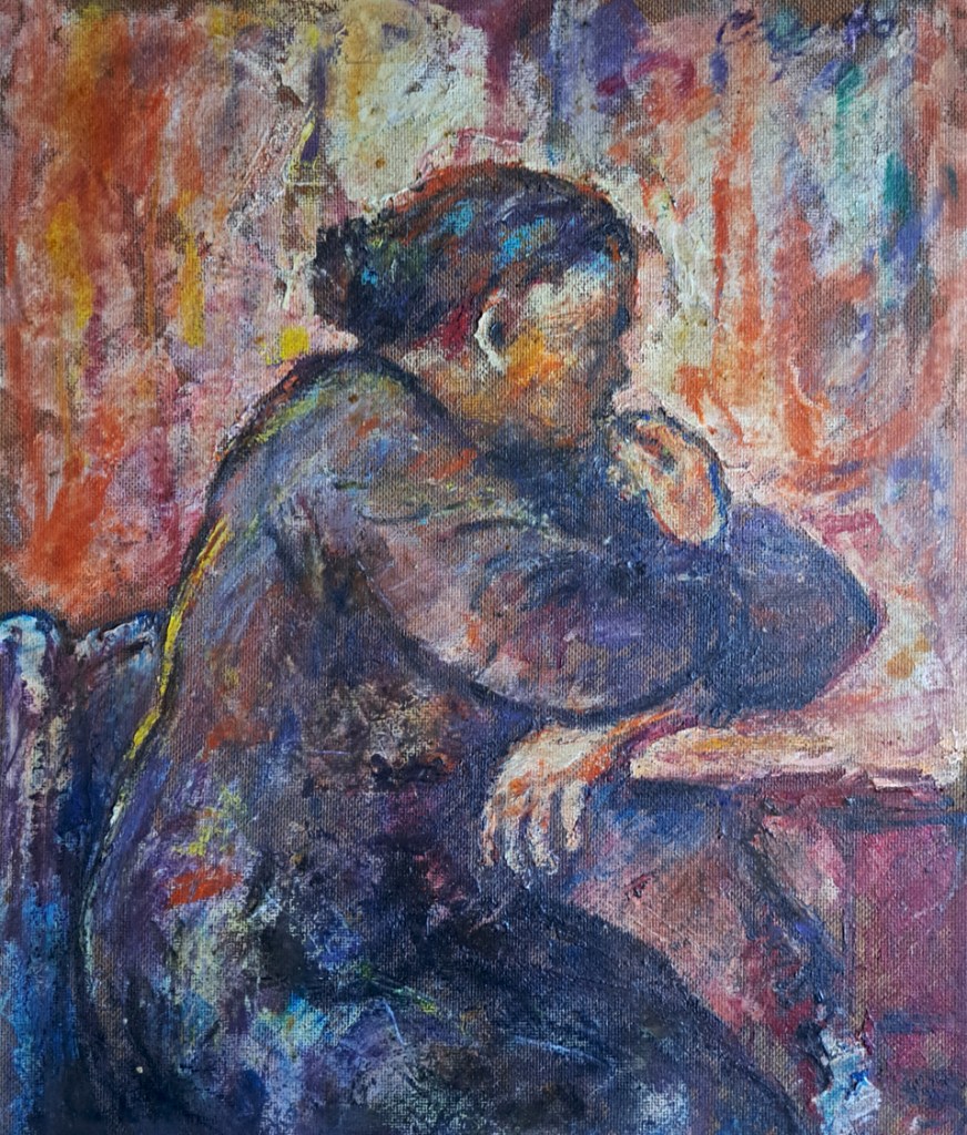 Titolo: “AVVOLTA NEI PENSIERI” Il titolo non è stato attribuito dall’artista, ma da Giovanna Pirini. L’opera è copia unica