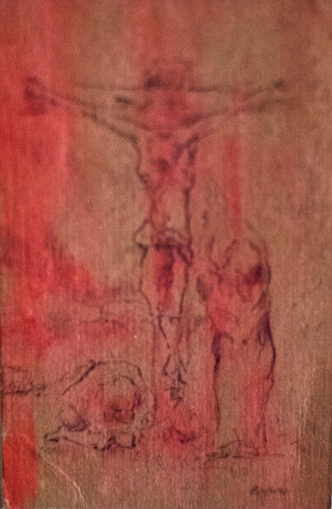Titolo: “CROCIFISSIONE IN ROSSO ” Il titolo non è stato attribuito dall’artista, ma da Giovanna Pirini. L’opera è copia unica.