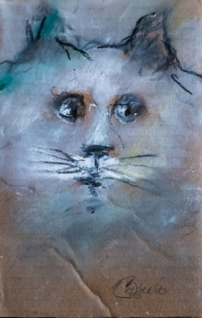 Titolo: “OCCHI DI GATTO ” Il titolo non è stato attribuito dall’artista, ma da Flavia Maroncelli. L’opera è copia unica.