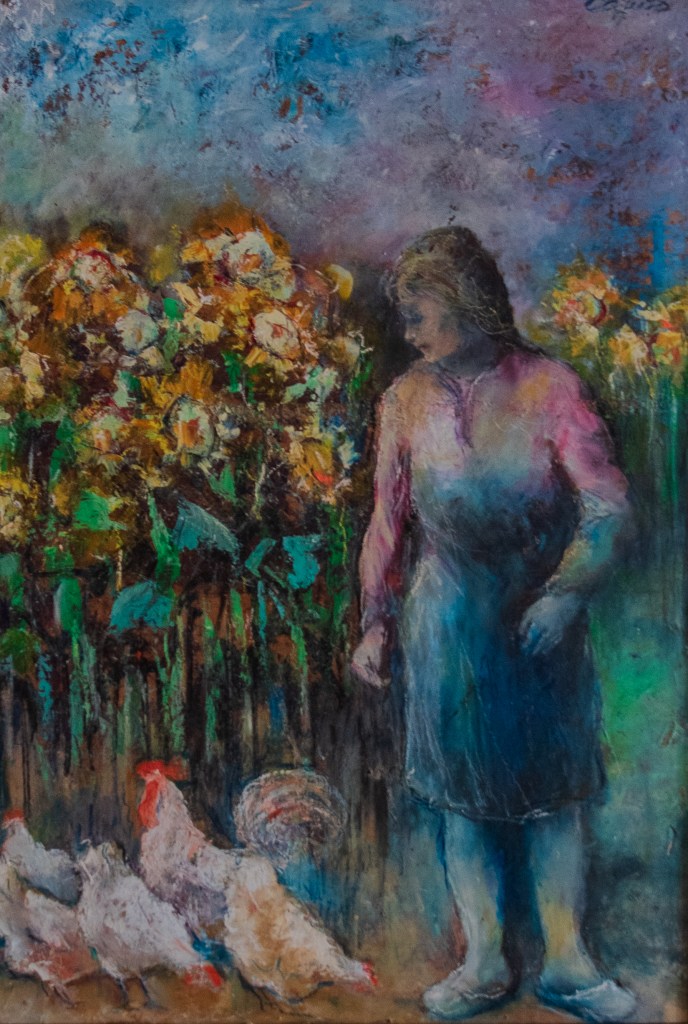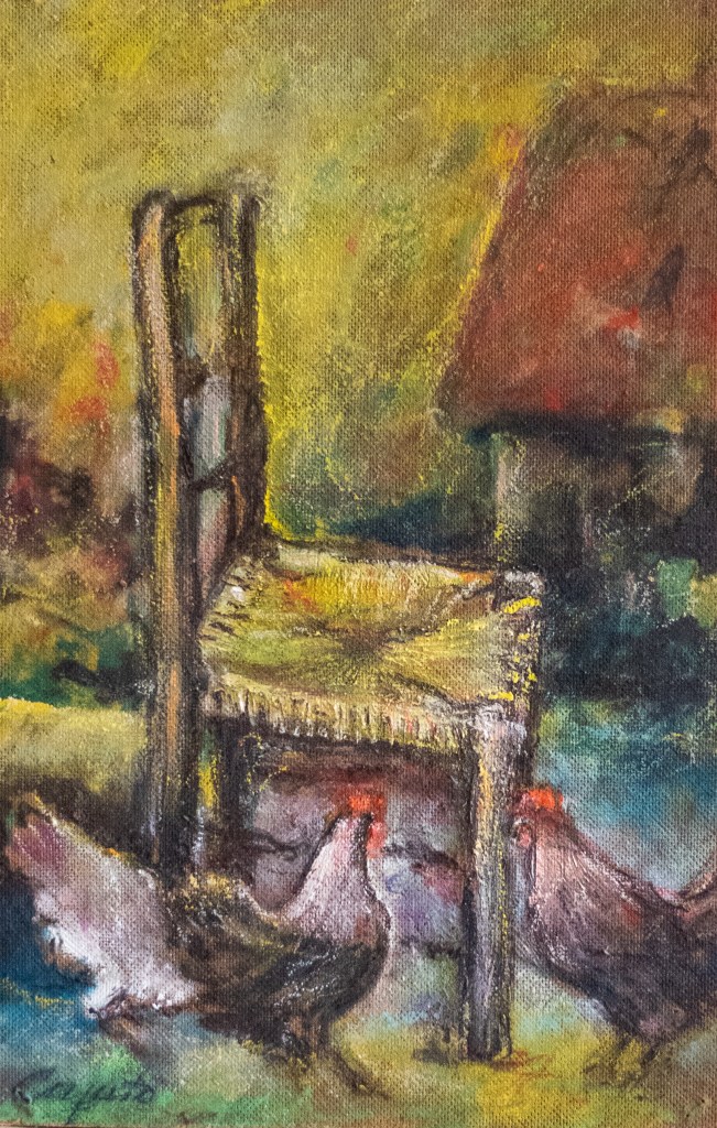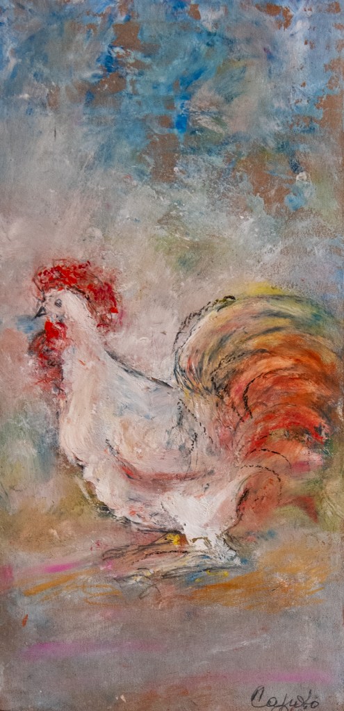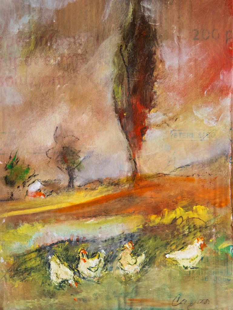 Titolo: “GALLINE IN FUGA” Il titolo non è stato attribuito dall’artista, ma da Giovanna Pirini. L’opera è copia unica.