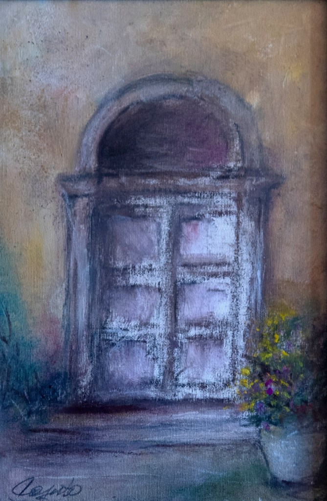 Titolo: “PORTONE CON PIANTA IN FIORE” Il titolo non è stato attribuito dall’artista, ma da Giovanna Pirini. L’opera è copia unica