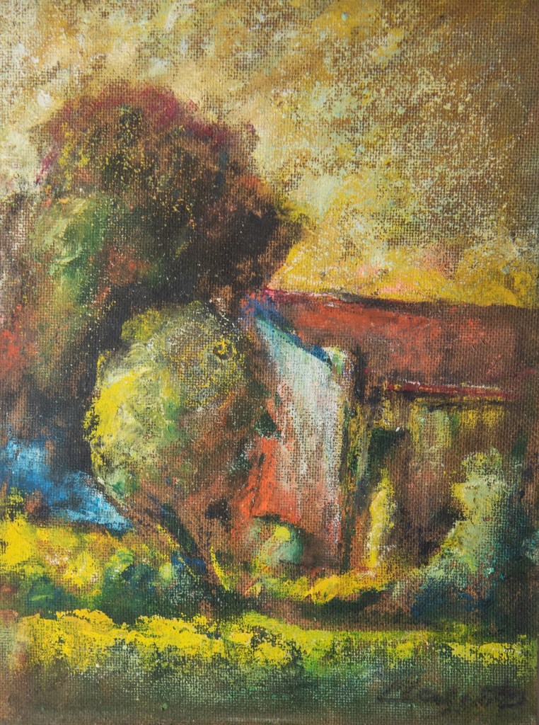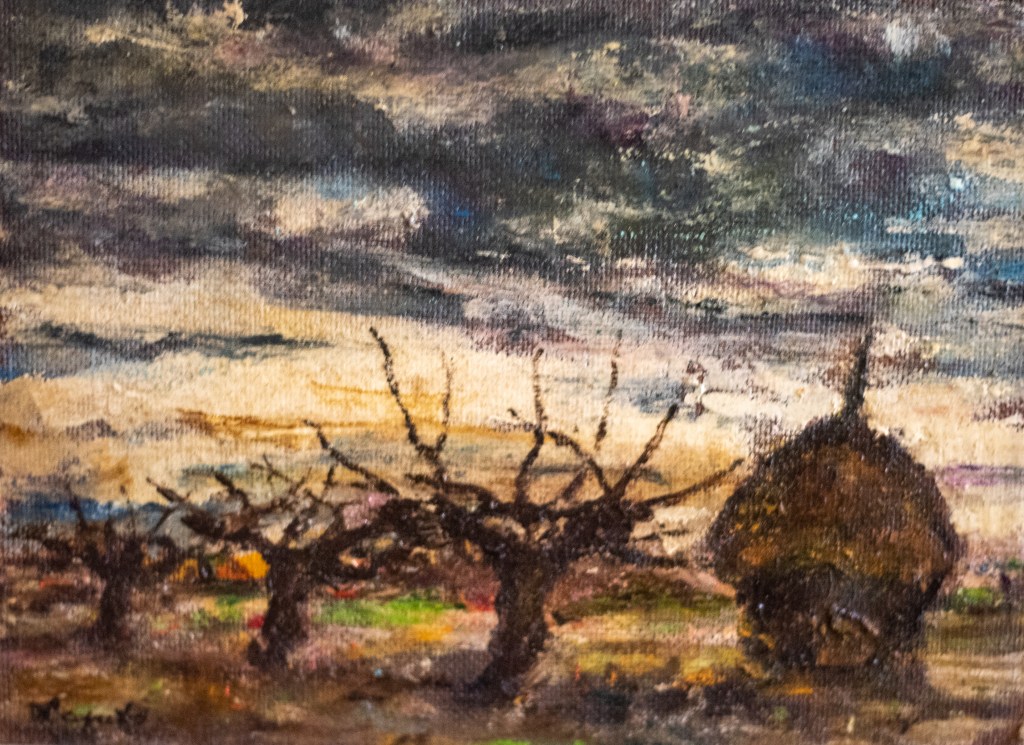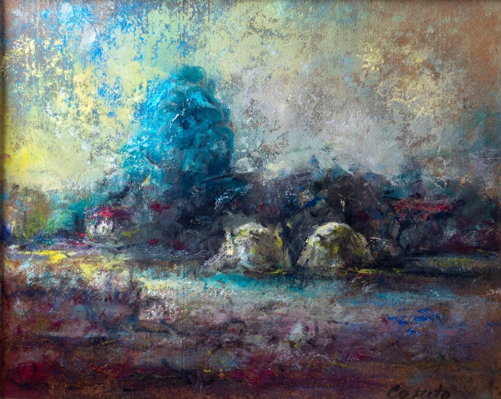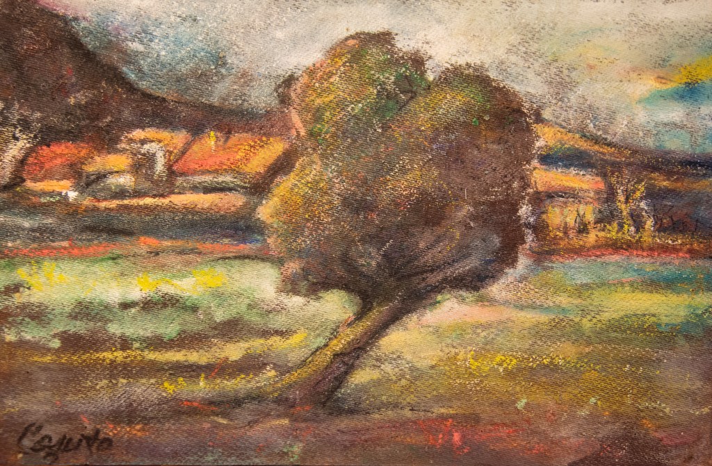 Titolo: “PAESAGGIO CON COVONI” Il titolo non è stato attribuito dall’artista, ma da Giovanna Pirini. L’opera è copia unica