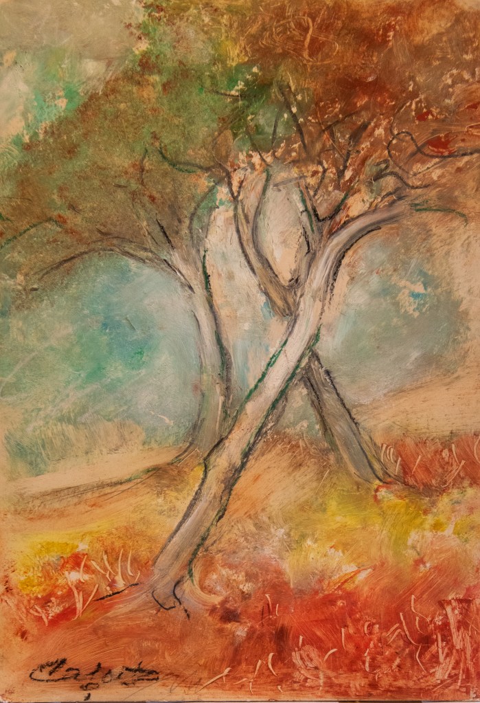 Titolo: “DUE ALBERI” Il titolo non è stato attribuito dall’artista, ma da Giovanna Pirini. L’opera è copia unica